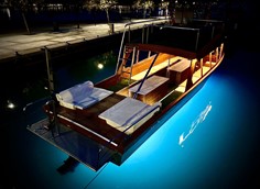 Passeig interpretatiu del medi marí de la badia a bord del vaixell de divulgació amb visió submarina a través de cristalls transparents en el casc.
